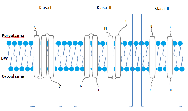 - N-koniec białka znajduje się w peryplazmie a hydrofilny C-koniec w cytoplazmie
